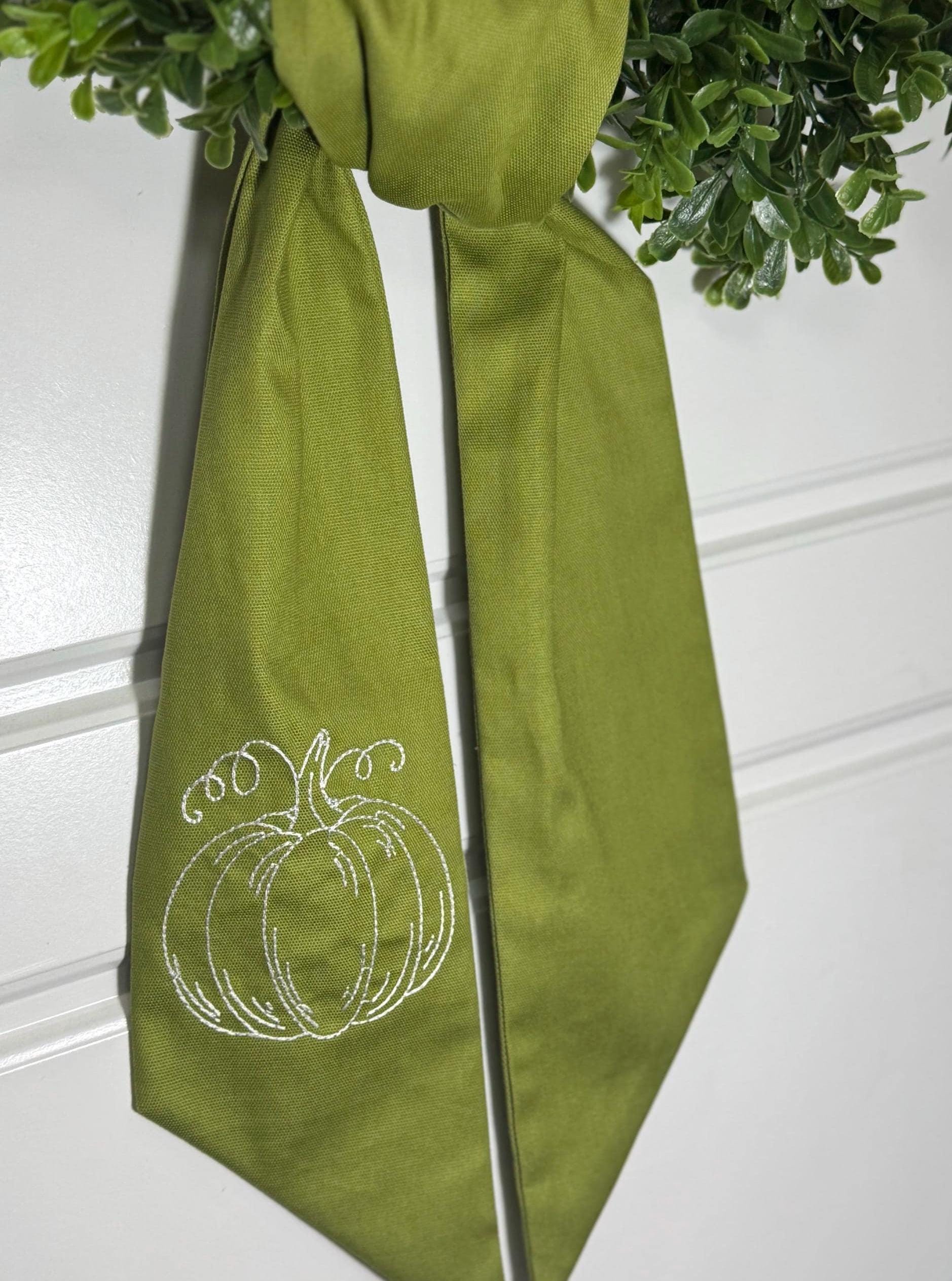 Cute chartreuse wreath sash with simple sketched pumpkin design perfect all fall!